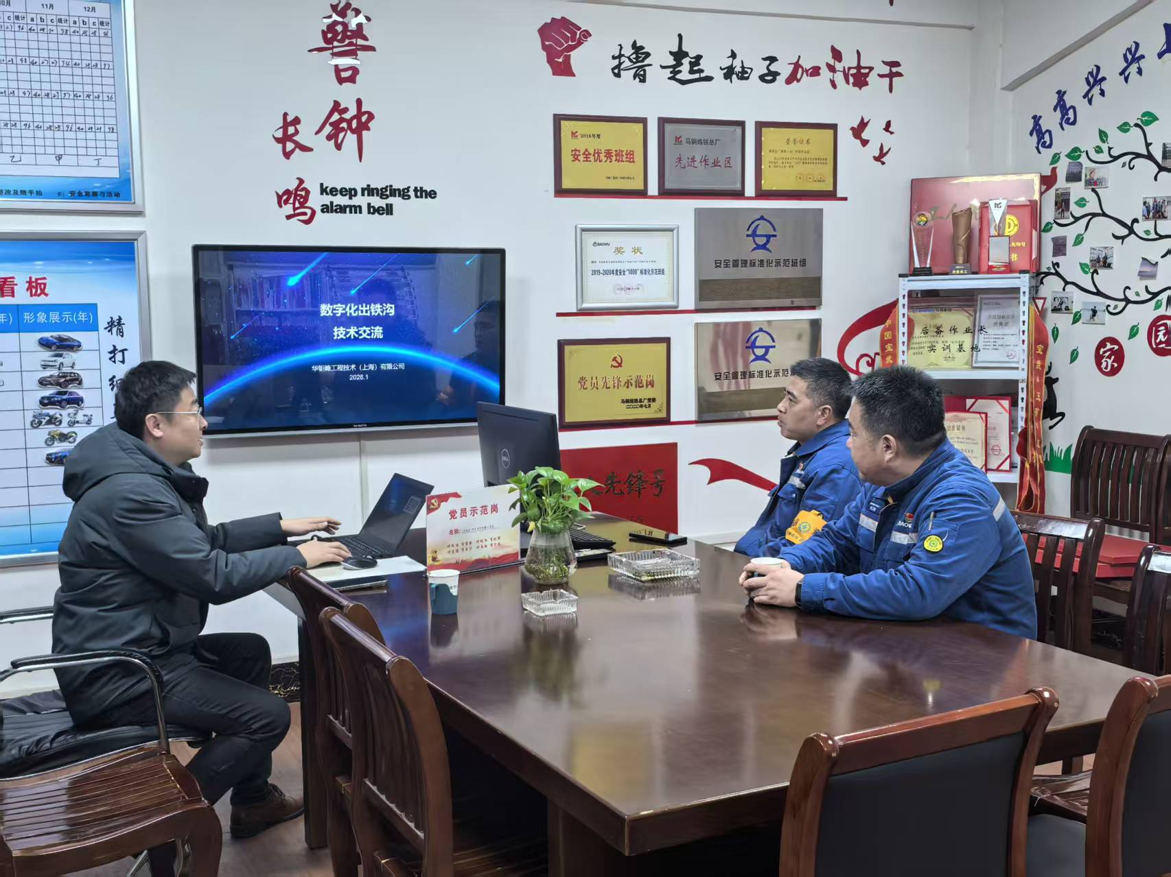 2026年3月26日,华钜峰工程技术(上海)有限公司杨一伟董事长率技术团队前往马鞍山钢铁有限公司炼铁厂在马钢本部举行了“智慧铁沟系统”专题技术交流会。本次会议旨在通过跨部门、跨领域的深度协作,共同探讨智慧化技术在炼铁生产核心环节的创新应用。